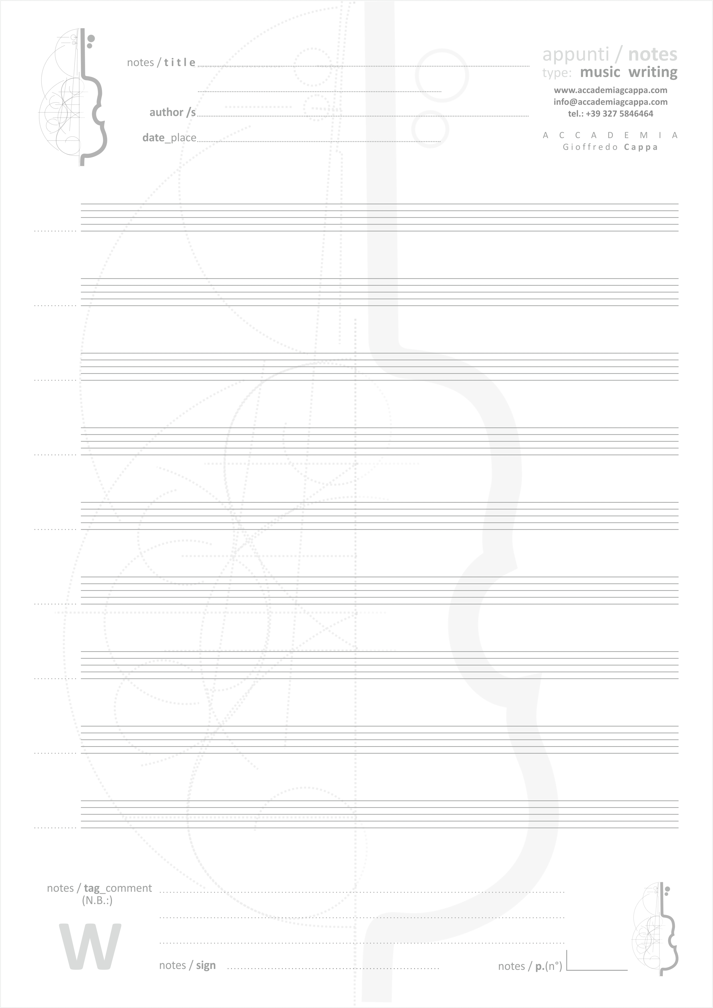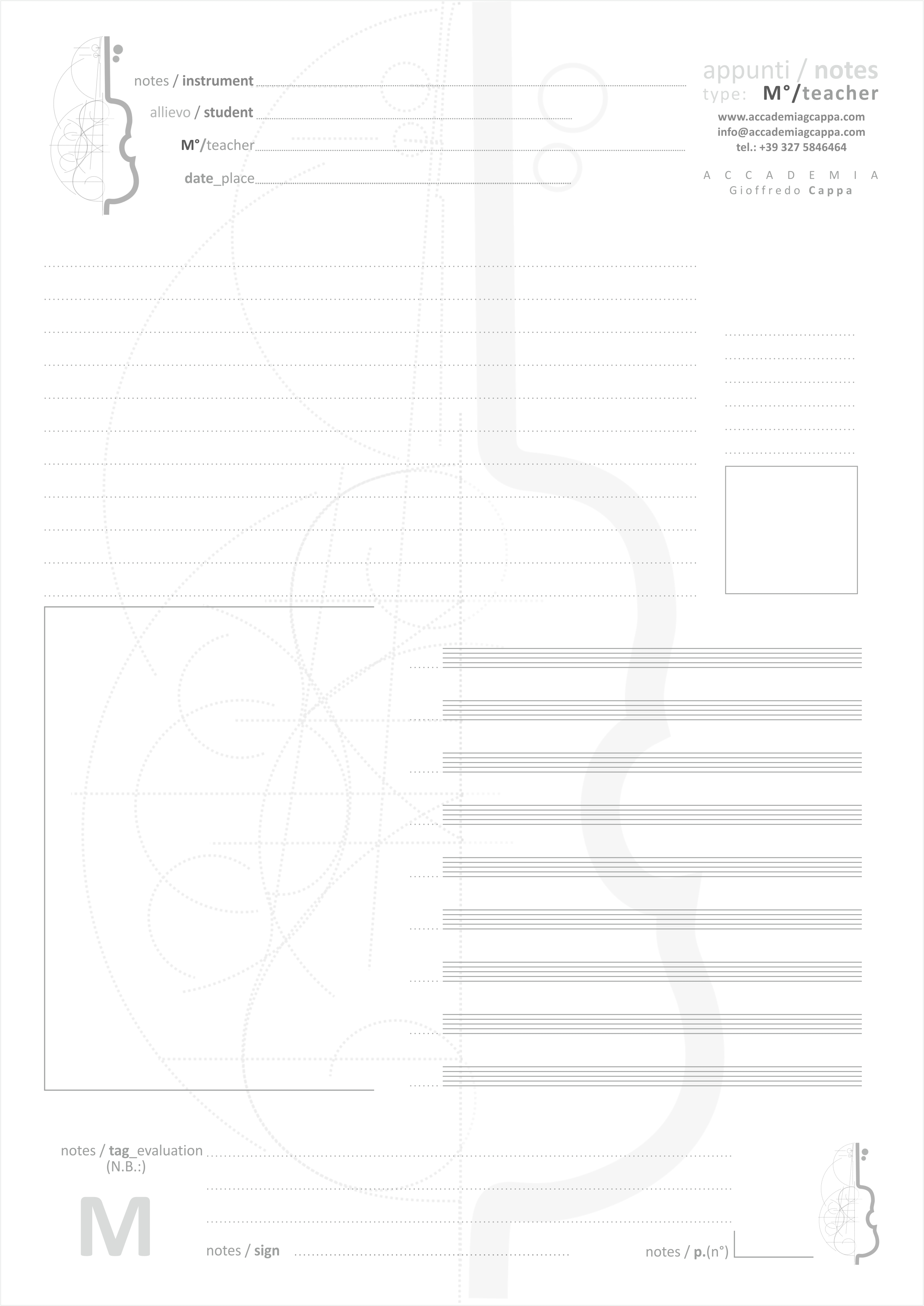 Il corso di notazione parte da semplici esercizi di disegno a mano per poi avvicinarsi gradualmente al computer tramite il software Sibelius.